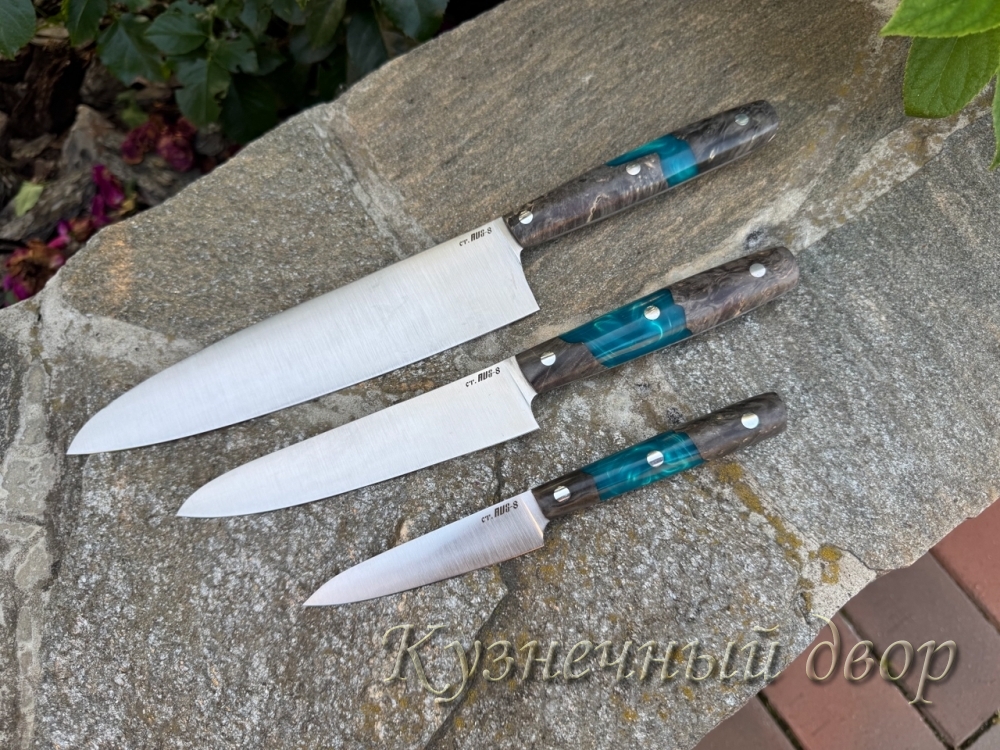 1) "Поварской" сталь-АУС-8, рукоять-акрил.